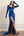 Bez ramiączek Syrena Niebieski biały kwiat Sukienka Na Studniówkę Długa Z odpinanymi rękawami