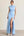 Błękitny sukienka wizytowa z marszczeniami i rozcięciem