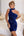 Błękitna Krótka Rękawy Długa Sukienka Robocza Linia Z Paskami