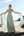 Jasnozielona dopasowana szyfonowa sukienka druhny z zimnymi ramionami i odpinanymi rękawami