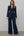 Ciemnoniebieskie dwuczęściowe damskie garnitury biznesowe z wycięciami i paskiem