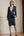 Granatowe 2 częściowe ołówkowe garnitury biznesowe midi z klapami w kształcie klapy z paskiem