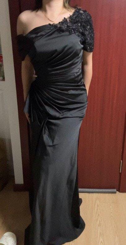 Czarna Długa Syrenka Asymetryczna dla suknie na wesele dla mamy z Aplikacjami