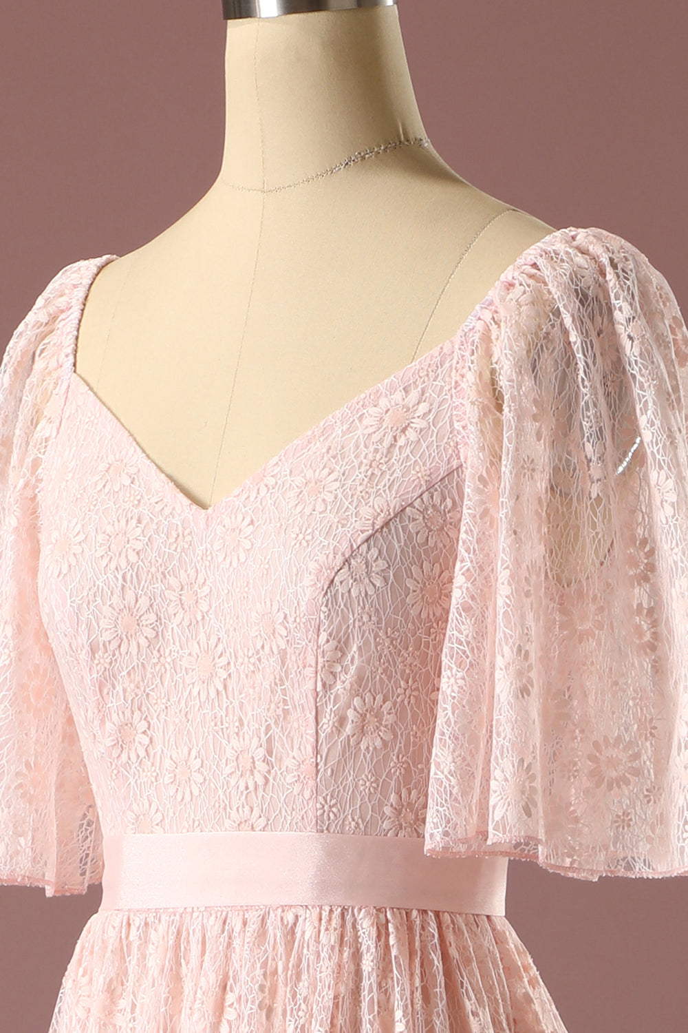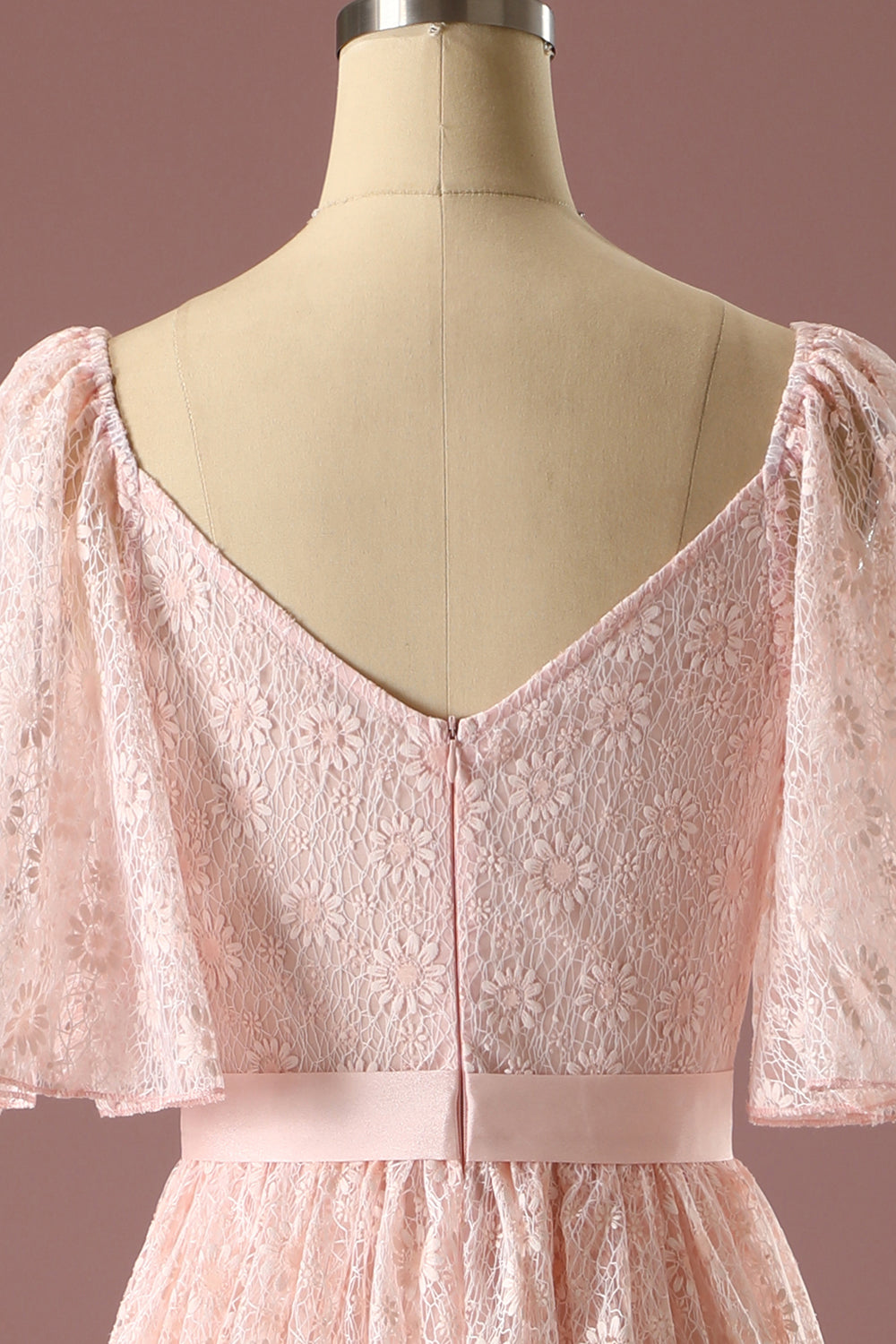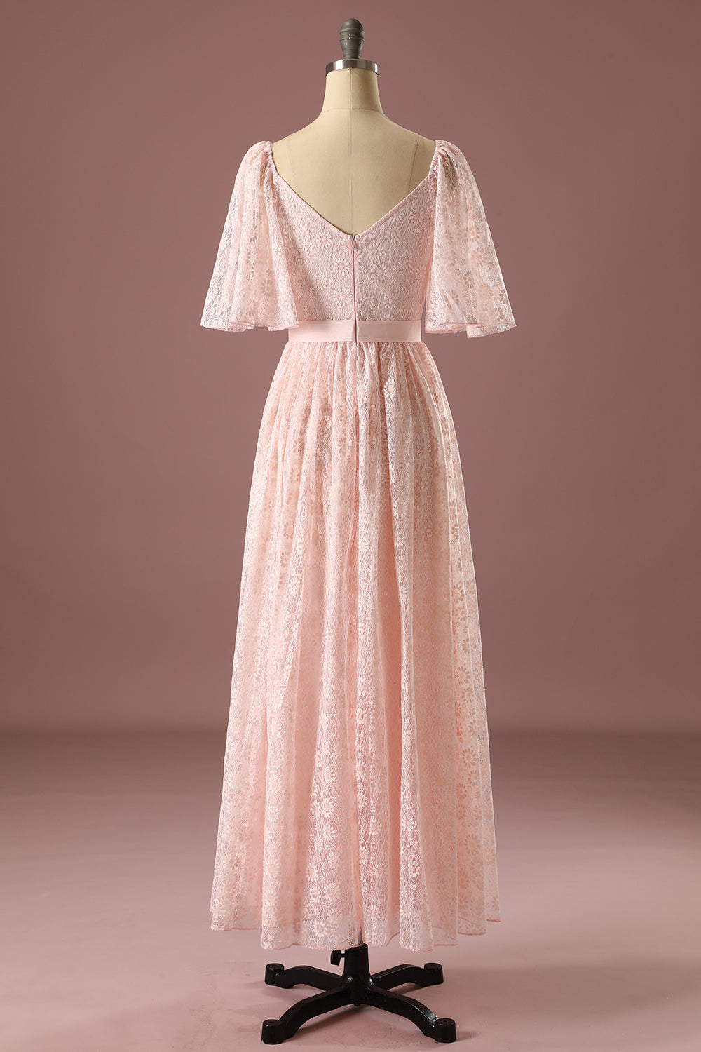 Różowa Dekolt V Sukienki Koronkowe Na Wesele