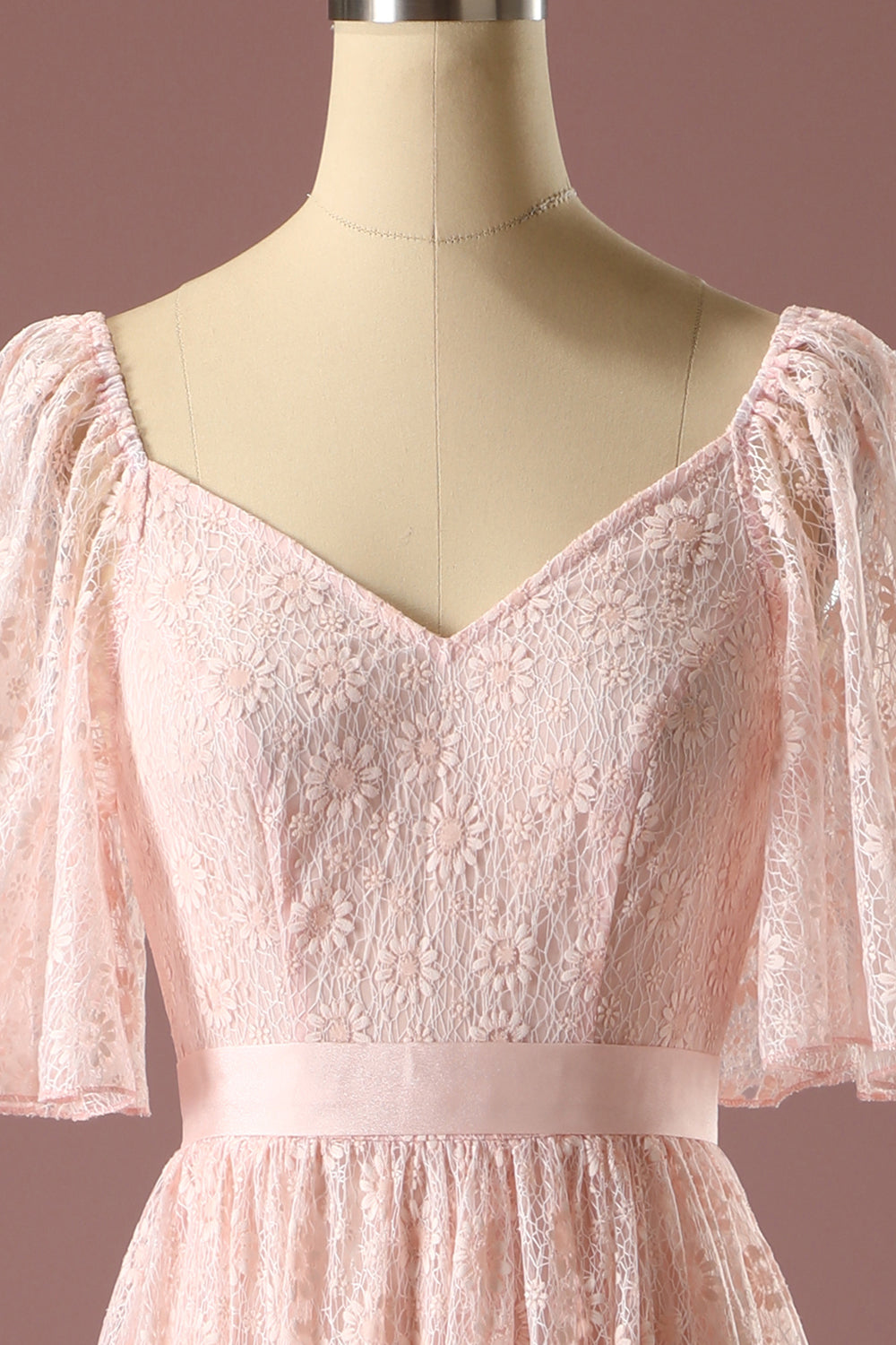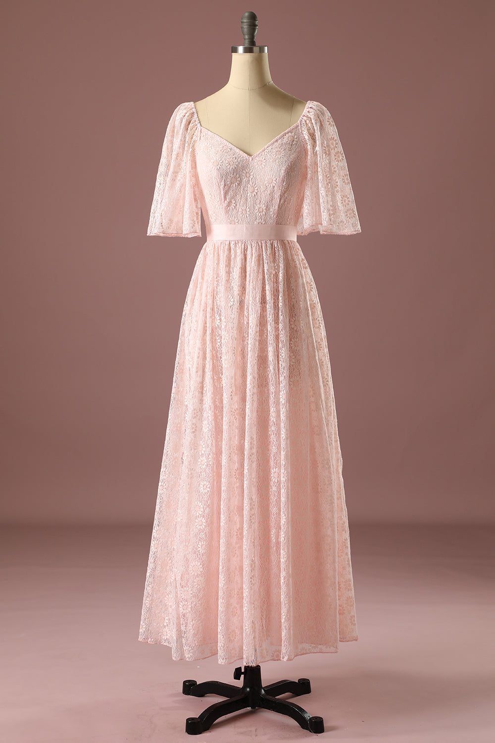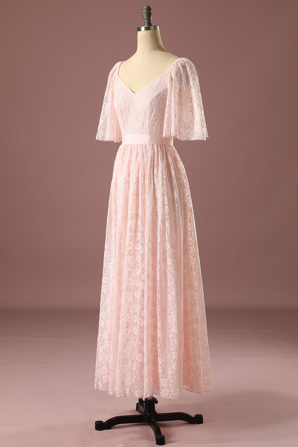 Różowa Dekolt V Sukienki Koronkowe Na Wesele