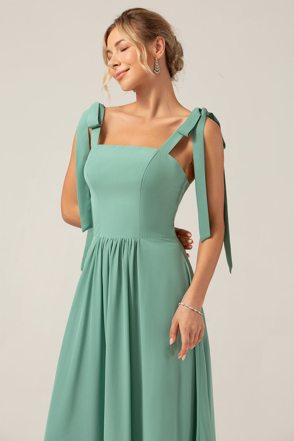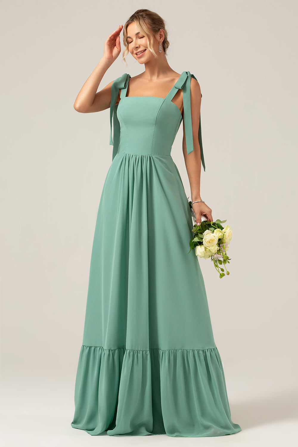 Linia Eukaliptus Szyfonowa Długa Sukienka Druhny Z Plisowaniem