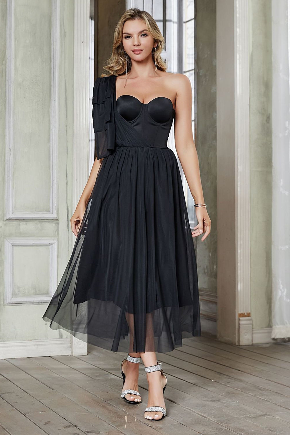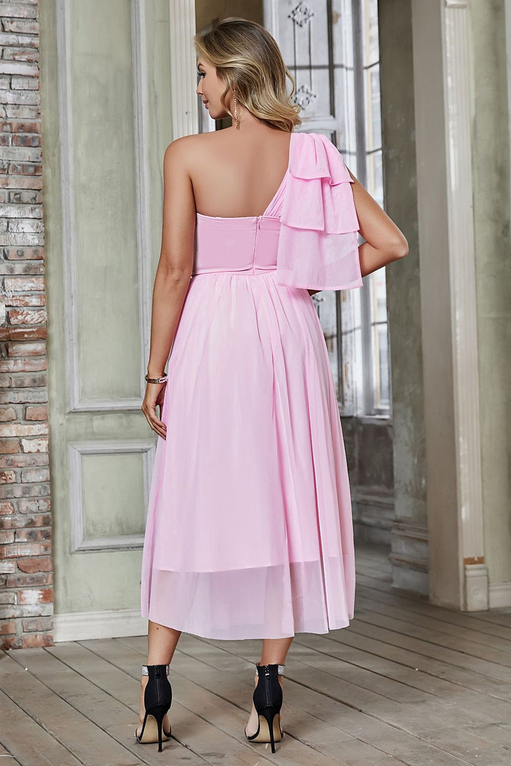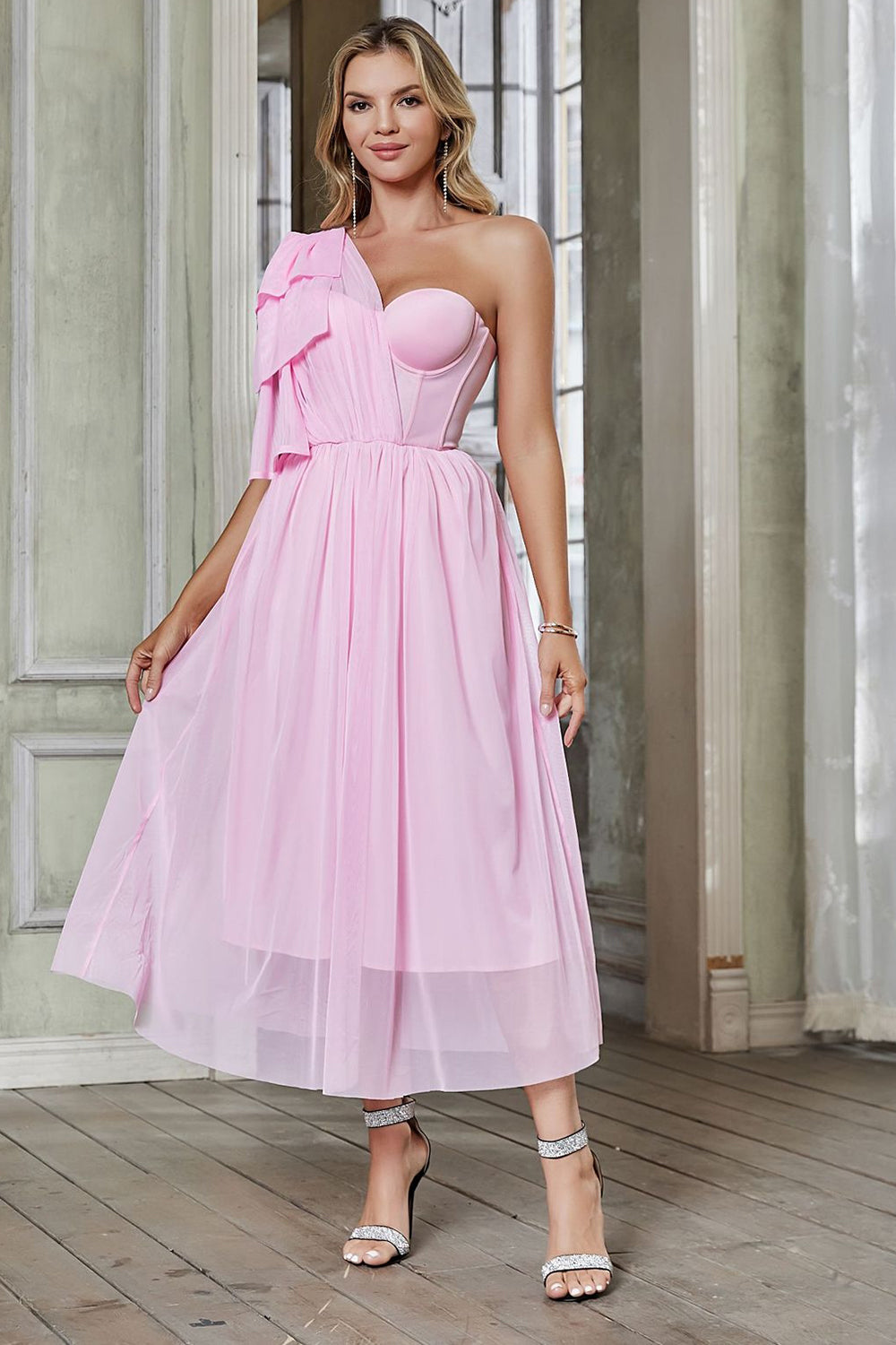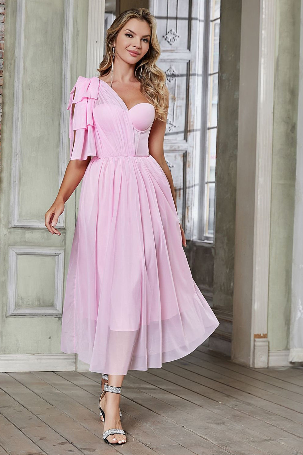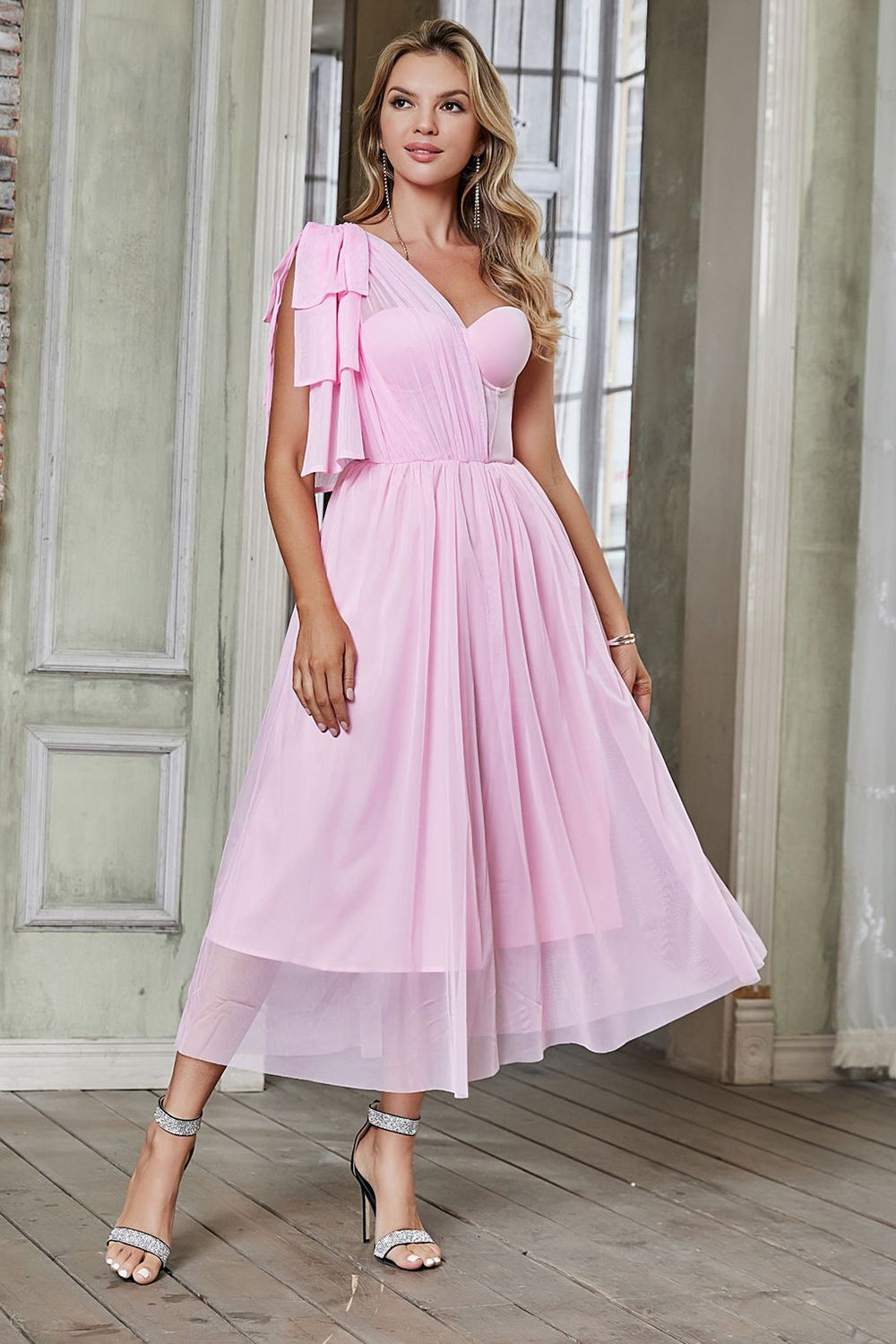 Morelowa Na Jedno Ramię Sukienka Szyfonowe Gorsetowe Na Wesele