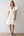 Kość słoniowa i satynowa sukienka robocza z dekoltem w szpic i paskiem