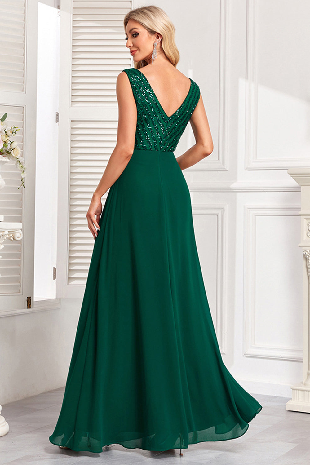 Błyszcząca Ciemnozielona Linia A Cekiny Długa Sukienka Na Studniówkę Z Falbankami
