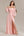 Różowa marszczona sukienka formalna z dekoltem w serek z rozcięciem