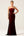 Elegancka bordowa szyfonowa szyfonowa sukienka z dekoltem w serek z koronkowymi aplikacjami z koronkowymi aplikacjami