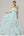 Biało-niebieska Sukienka Na Wesele z Odkrytymi Ramionami Z Falbanami
