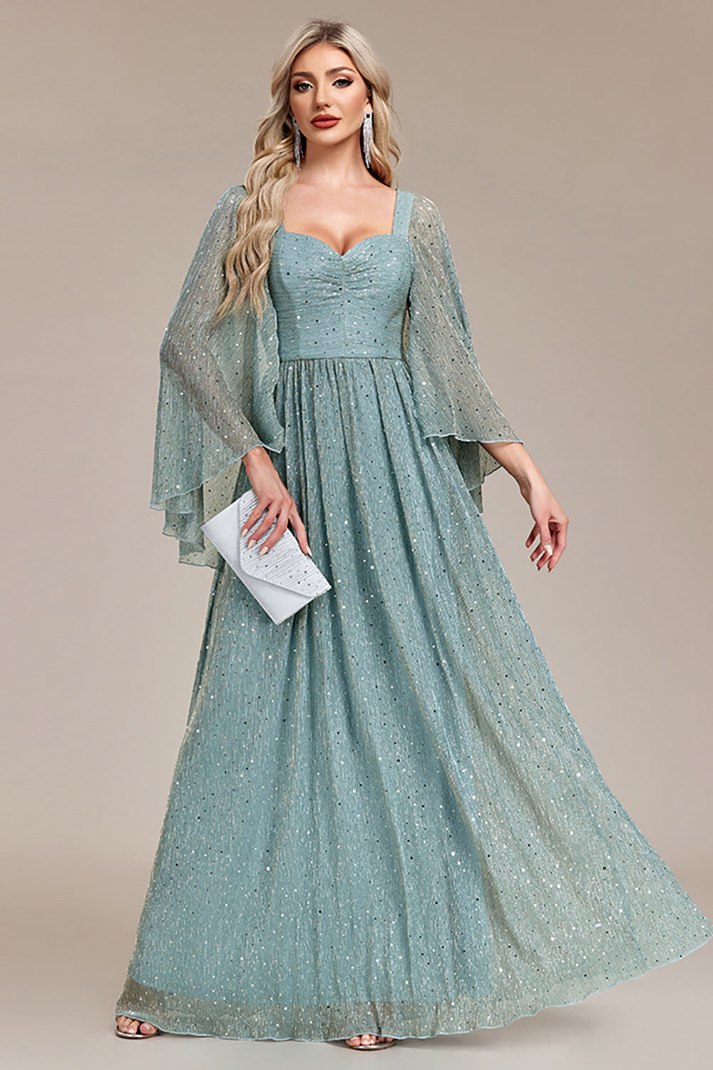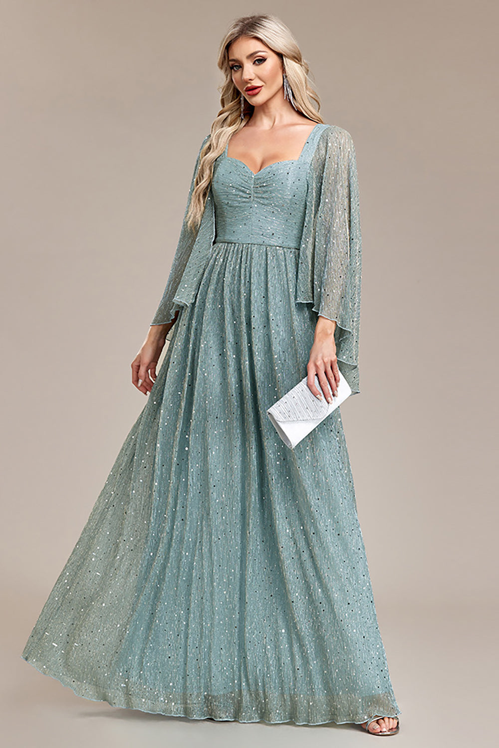 Długie Rękawy Szara Zieleń Błyszczący Sukienka Na Wesele Dla Mamy