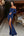 Syrenka na jedno ramię czarno-niebieska sukienka wizytowa z falbankami