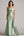 Zakurzona szałwia syrenka na szyi satynowa sukienka maxi bez pleców