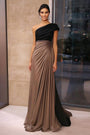 Błyszcząca złoto sukienka wieczorowa z jednym ramieniem w kształcie syreny z rozcięciem