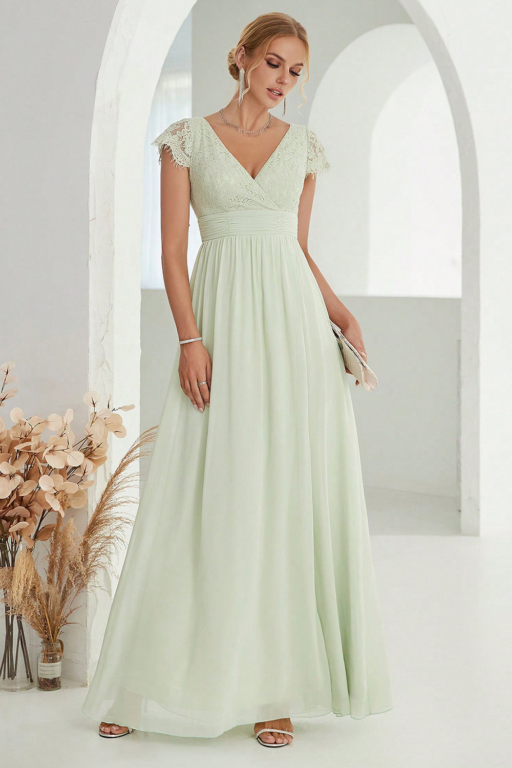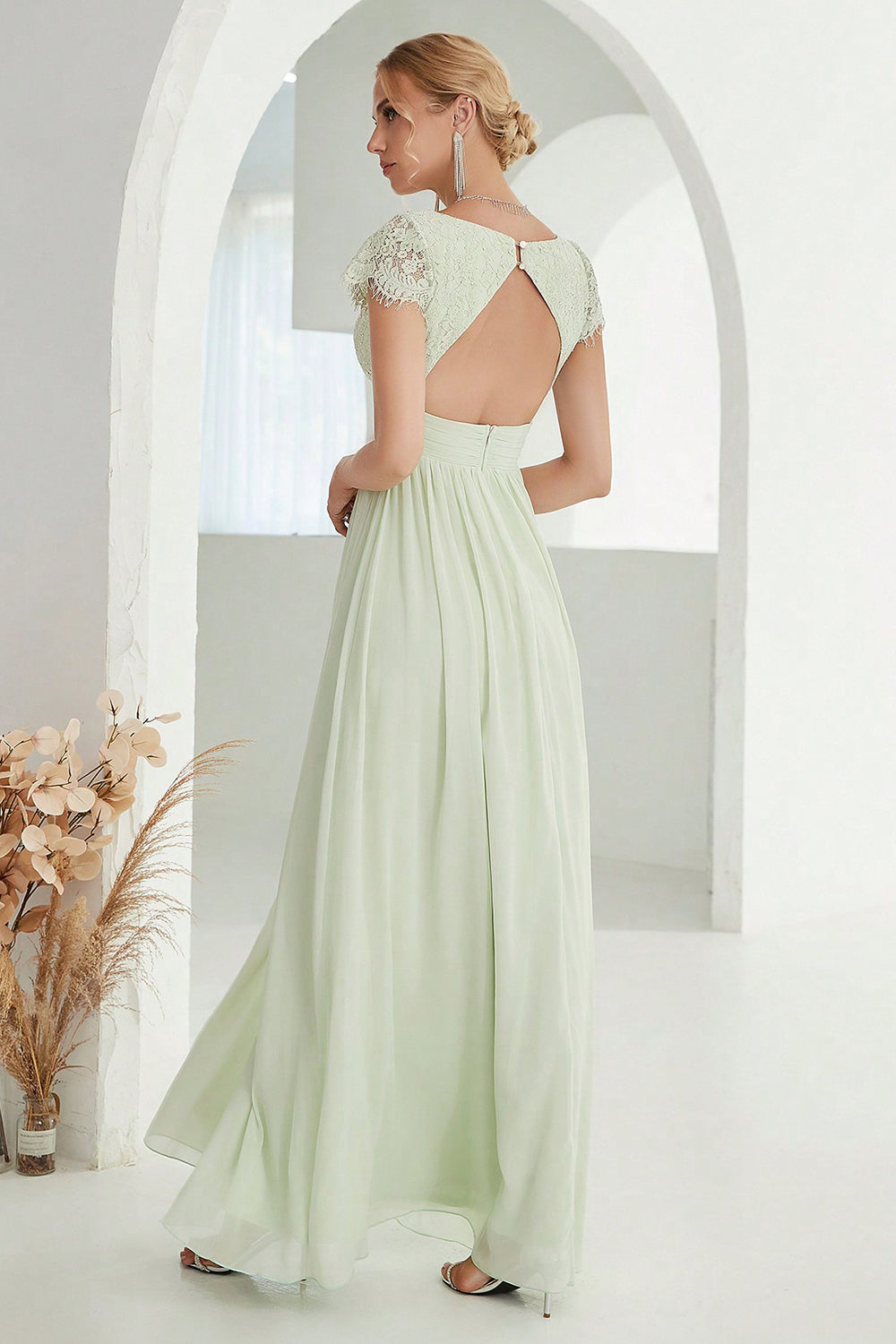Jasnozielona Sukienka Szyfonowa Na Wesele Z Rozcięciem w Kształcie Litery A